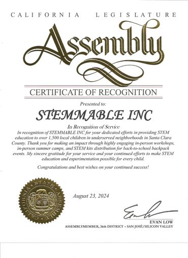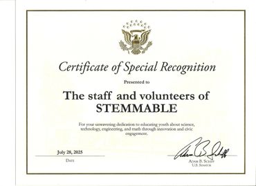 STEMMABLE's mission is to make STEM education and experimentation possible for every child. Since 2023, we have served over 3300 students through 39 events. Consider donating to help us continue of our mission of spreading STEM education!